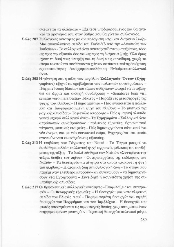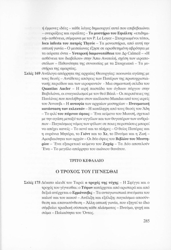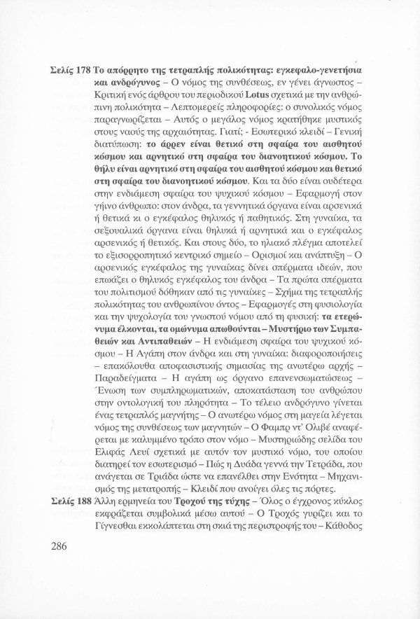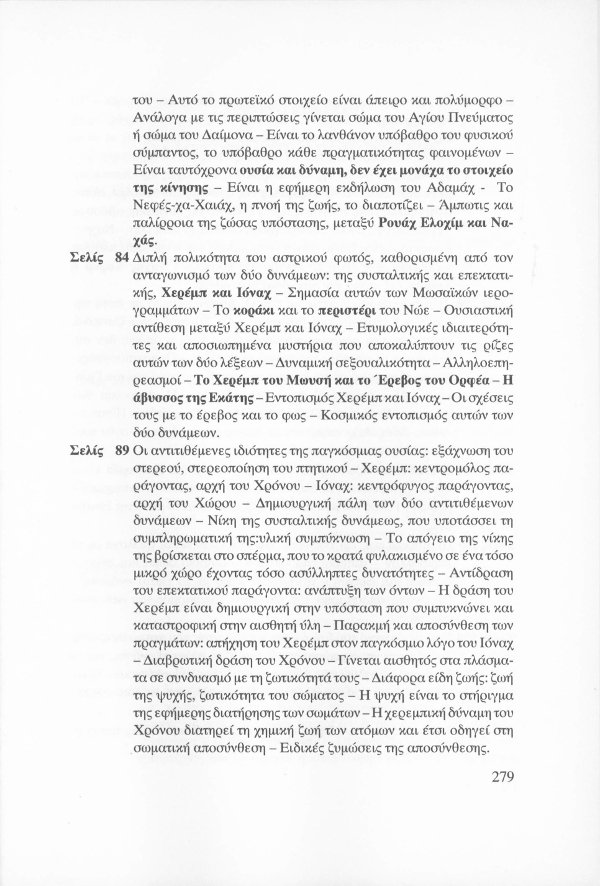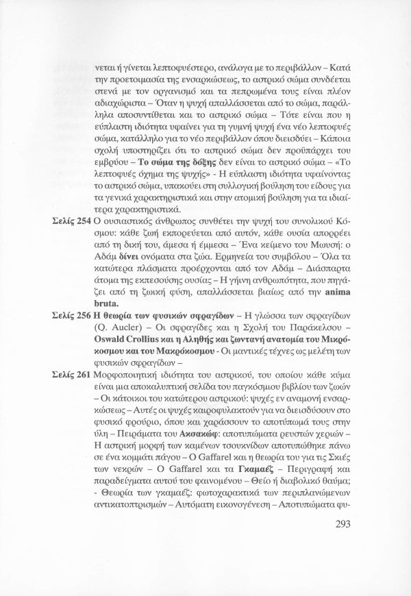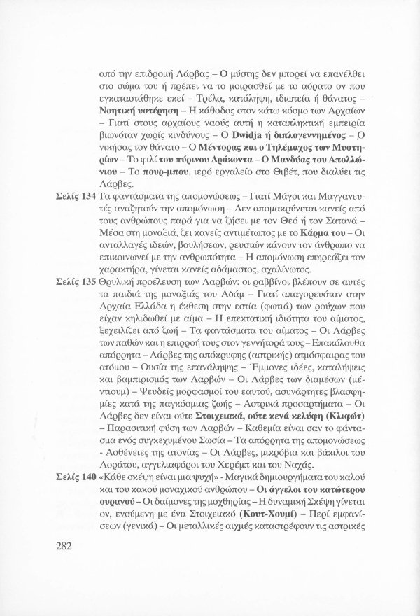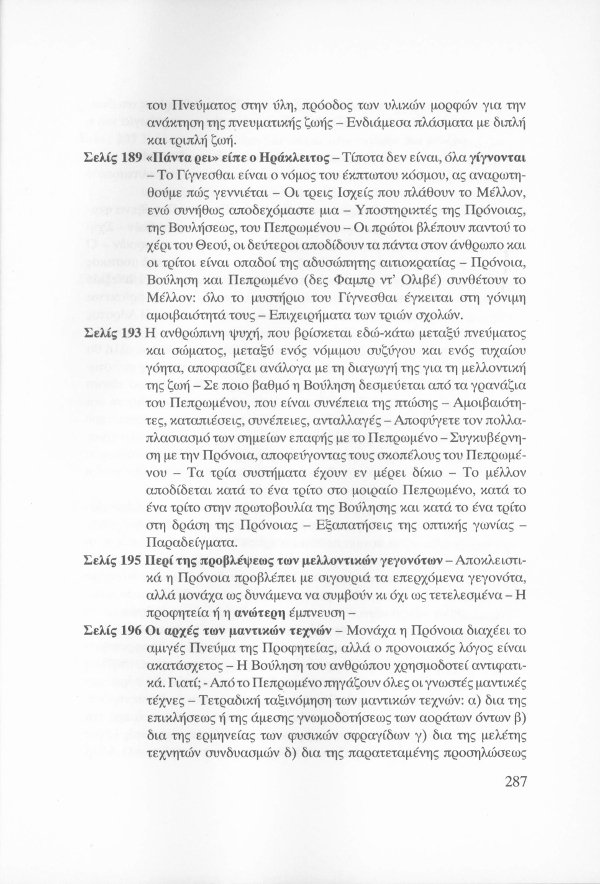 Η εσωτερική έννοια του Κατακλυσμού · Το Έρεβος του Ορφέα και η Άβυσσος της Εκάτης · Εκδηλώσεις Αγγελικών και Δαιμονικών μορφών μέσω του Αστρικού Φωτός · Αστρικό σώμα και παραισθήσεις · Οι κάτοικοι του Αστρικού πεδίου · Παρασιτική φύση συγκεκριμένων όντων του Αστρικού · Οι Δαίμονες ως ανθρώπινα δημιουργήματα μέσω της βουλήσεως και της φαντασίας · Μαντικές τέχνες · Πνευματισμός · Αστρικός ωροσκόπος · Τα Εγρηγορότα ως συλλογικές οντότητες με ανυπολόγιστη διάρκεια και ισχύ · ΜΙΧΑΗΛ: Το Εγρηγορός της Δωρικής Μυήσεως και Κοινωνίας των Εκλεκτών, με το οποίο επικοινωνούσε ο Μωυσής · ΣΑΜΑΗΛ: Το κακό - ψυχικό Εγρηγορός των διεστραμμένων βουλήσεων ·