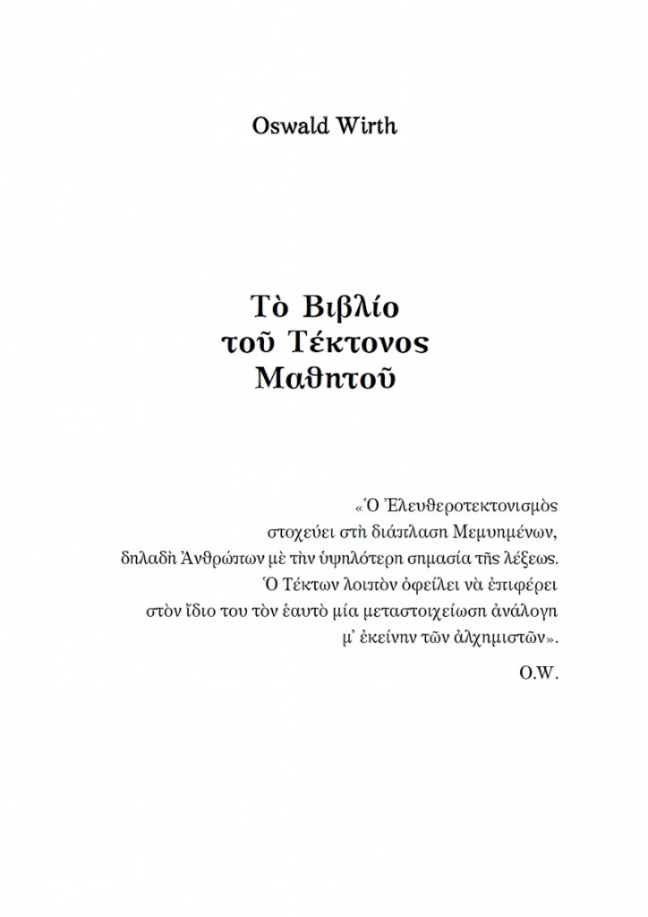 Ὁ Ὄσβαλντ Βίρτ (Oswald Wirth), ὑπῆρξε ἕνας ἀπὸ τοὺς διασημότερους Τέκτονες τοῦ αἰῶνα μας. Ἦταν μαθητὴς τοῦ μεγάλου Ροδόσταυρου καὶ Καμπαλιστῆ, Στανισλὰς ντὲ Γκουαϊτὰ (Stanislas de Guaita) καὶ ἀπὸ αὐτὸν ἔλαβε τὶς βαθύτερες ἐσωτερικές του γνώσεις. Αὐτὸ ὅμως, ποὺ ἀνέπτυξε ἀπὸ μόνος του, σὲ ἄριστο βαθμό, ἦταν ἡ ἑρμηνεία τῶν Τεκτονικῶν ἀλληγοριῶν καὶ συμβόλων, καθὼς καὶ μία μεγάλη ἐμβάθυνση στὴν ἔννοια τοῦ Τεκτονικοῦ Ἰδεώδους.