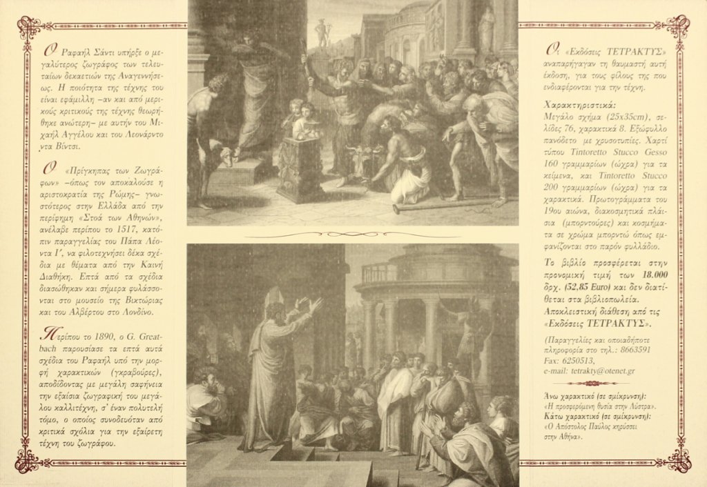 Ο «Πρίγκηπας των Ζωγράφων» - όπως τον αποκαλούσε η αριστοκρατία της Ρώμης – γνωστότερος στην Ελλάδα από την περίφημη «Στοά των Αθηνών», ανέλαβε περίπου το 1517, κατόπιν παραγγελίας του Πάπα Λέοντα Ι΄, να φιλοτεχνήσει δέκα σχέδια με θέματα από την Καινή Διαθήκη. Επτά από τα σχέδια διασώθηκαν και σήμερα φυλάσσονται στο μουσείο της Βικτώριας και του Αλβέρτου στο Λονδίνο.